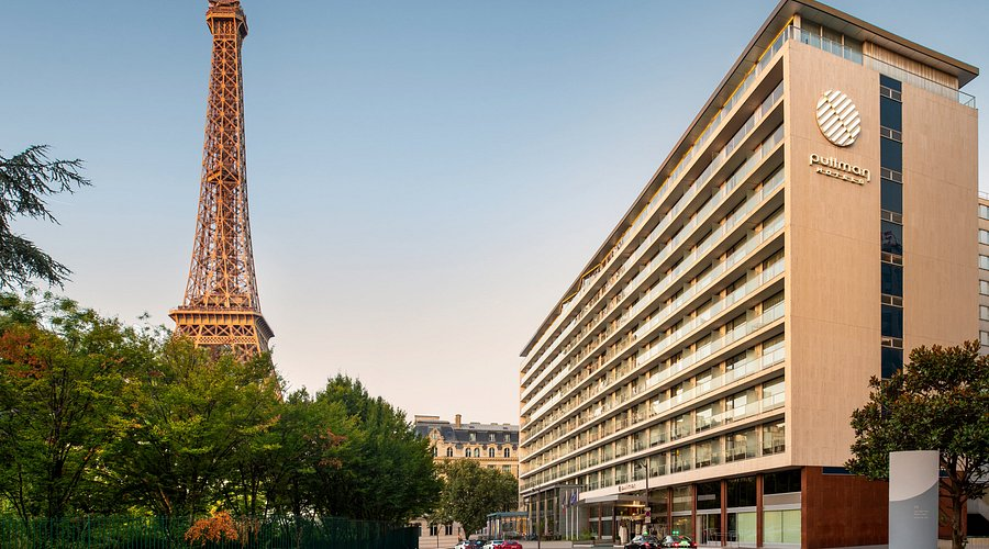Pullman Paris Tour Eiffel is a modern upscale hotel offering stylish rooms with stunning views of the Eiffel Tower, contemporary design, fine dining, business facilities, and convenient access to major Paris attractions and transport.