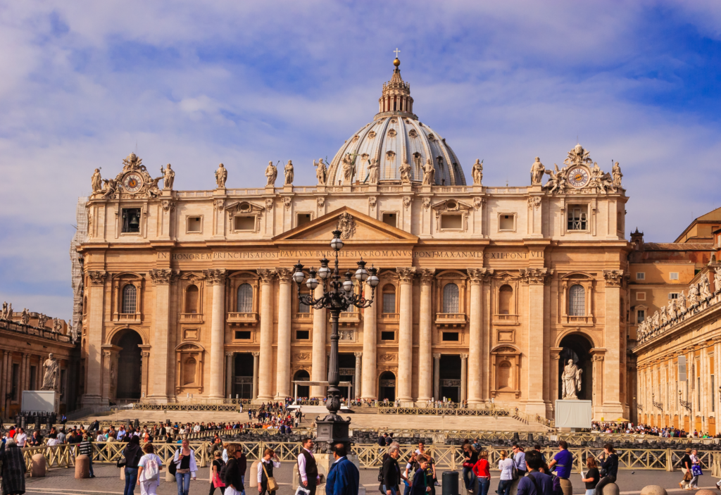St. Peter’s Basilica in Vatican City is a magnificent Renaissance church and a masterpiece of architecture. Famous for its enormous dome, intricate artwork, and religious significance, it attracts pilgrims and tourists, symbolizing faith, history, and the grandeur of Catholic tradition.
